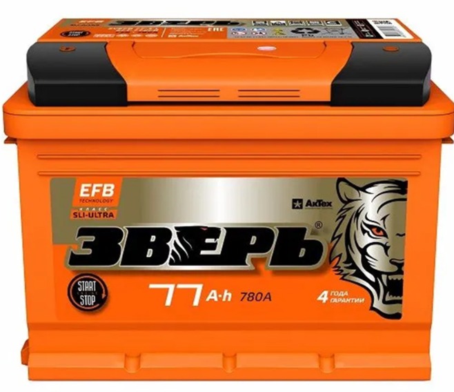 Аккумулятор "ЗВЕРЬ EFB 77 п.п. 780А" – это автомобильная АКБ повышенной мощности с технологией EFB (Enhanced Flooded Battery).