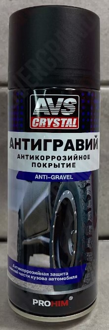 Антигравий AVS предназначен для эффективной защиты нижней части кузова автомобиля (колесные арки, пороги, фартук, днище и т.д.) от повреждений ударами различных вылетающих из-под колес частичек и дорожных реагентов. • Долговременная антикоррозийная защита нижней части кузова автомобиля • Эффективная защита от гравия, песка и дорожных реагентов • Дополнительная шумоизоляцияФормирует эластично-упругое покрытие черного цвета. Значительно продлевает срок службы кузова. Не расслаивается и не теряет эластичности при резких перепадах температур и на сильном морозе. Быстро сохнет, обладает хорошей адгезией, после высыхания можно окрашивать любыми типами красок. Обеспечивает дополнительную шумоизоляцию.