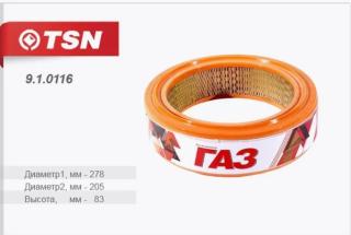 Фильтр воздушный TSN 910116 предназначен для автомобилей ГАЗ 24, 2410, 3102–31029 (двигатели ЗМЗ-24, ЗМЗ-402), ГАЗ 3302 и его модификации