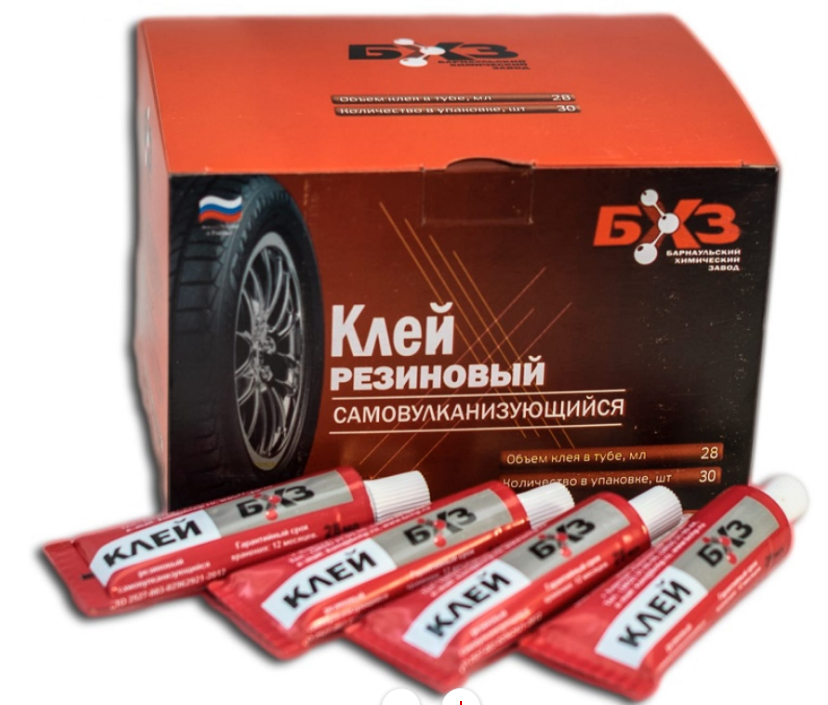 Клей для горячей вулканизации. БХЗ - самовулканизирующися клей для крепления пластырей или грибков. Продукт легко наносится и позволяет быстро восстановить повреждения в автошине.