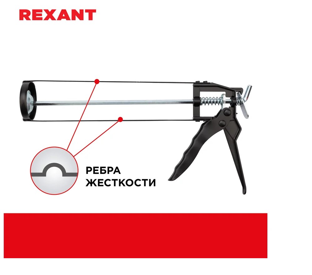 Скелетный пистолет для герметика REXANT используется при строительных и ремонтных работах, когда необходима качественная герметизация отверстий и швов.