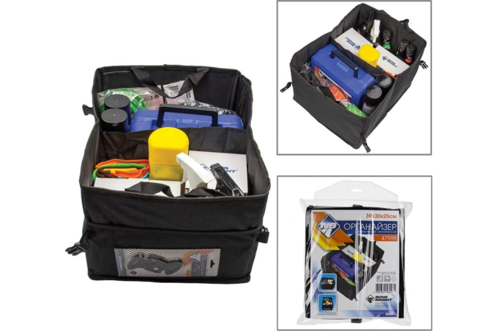 Предназначен для хранения в багажнике автомобиля предметов хозяйственно-бытового назначения. Изготовлен из прочного материала, имеет вместительный объем и устойчиво размещается в багажнике Благодаря продуманной конструкции легко складывается и не занимает много места.