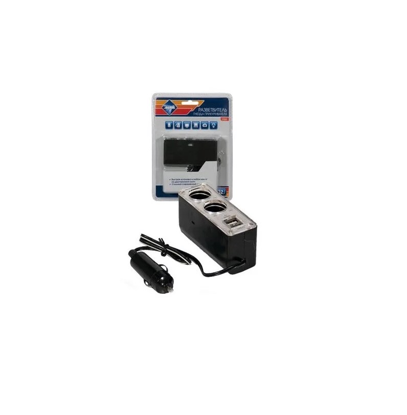 Разветвитель в прикуриватель "NOVA BRIGHT" (2 гнезда+2 USB, 12В)
